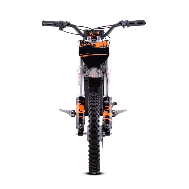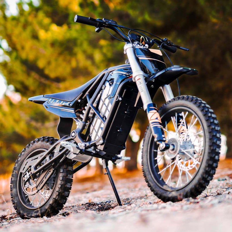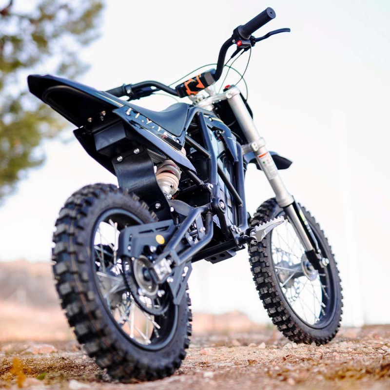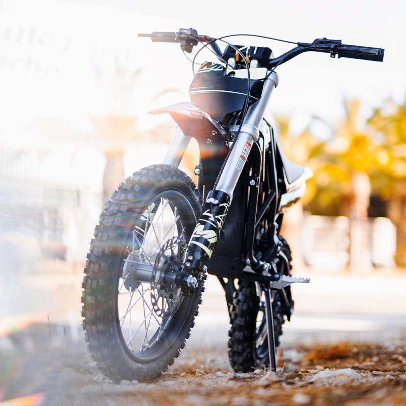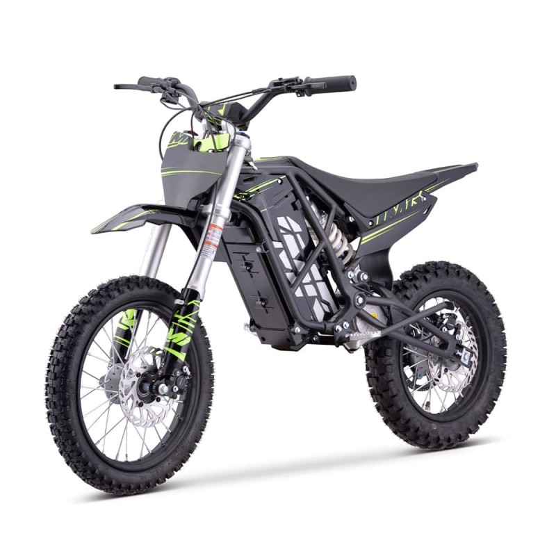 ¡Brutal! Nueva Minicross Eléctrica E-SX modelo IMR (2025) con motor de 2000W de potencia y bateria de litio de 60V. Autonomía de 2 horas y velocidad máxima de 53km/h. Suspensión delantera de horquilla invertida de 550mm y amortiguador trasero de 270mm. Freno delantero y trasero de accionamiento hidráulico y llantas de 14 y 12 pulgadas. Altura del asiento al suelo de 660mm